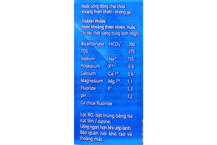 Thành phần: nguồn nước khoáng tự nhiên không chứa chất bảo quản, chất độc hại