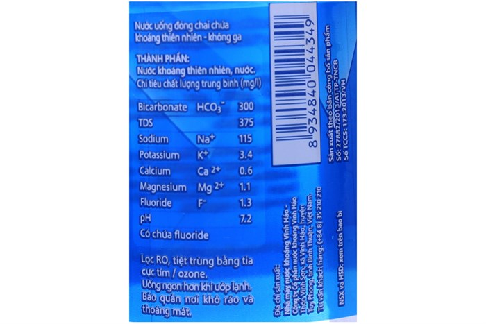 Tên sản phẩm: Nước khoáng Vĩnh Hảo chai 500 ml